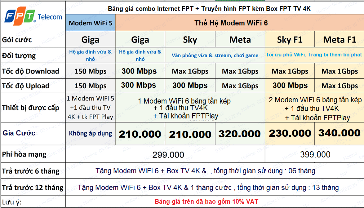 2. BẢNG GIÁ COMBO INTERNET + TRUYỀN HÌNH FPT PLAY